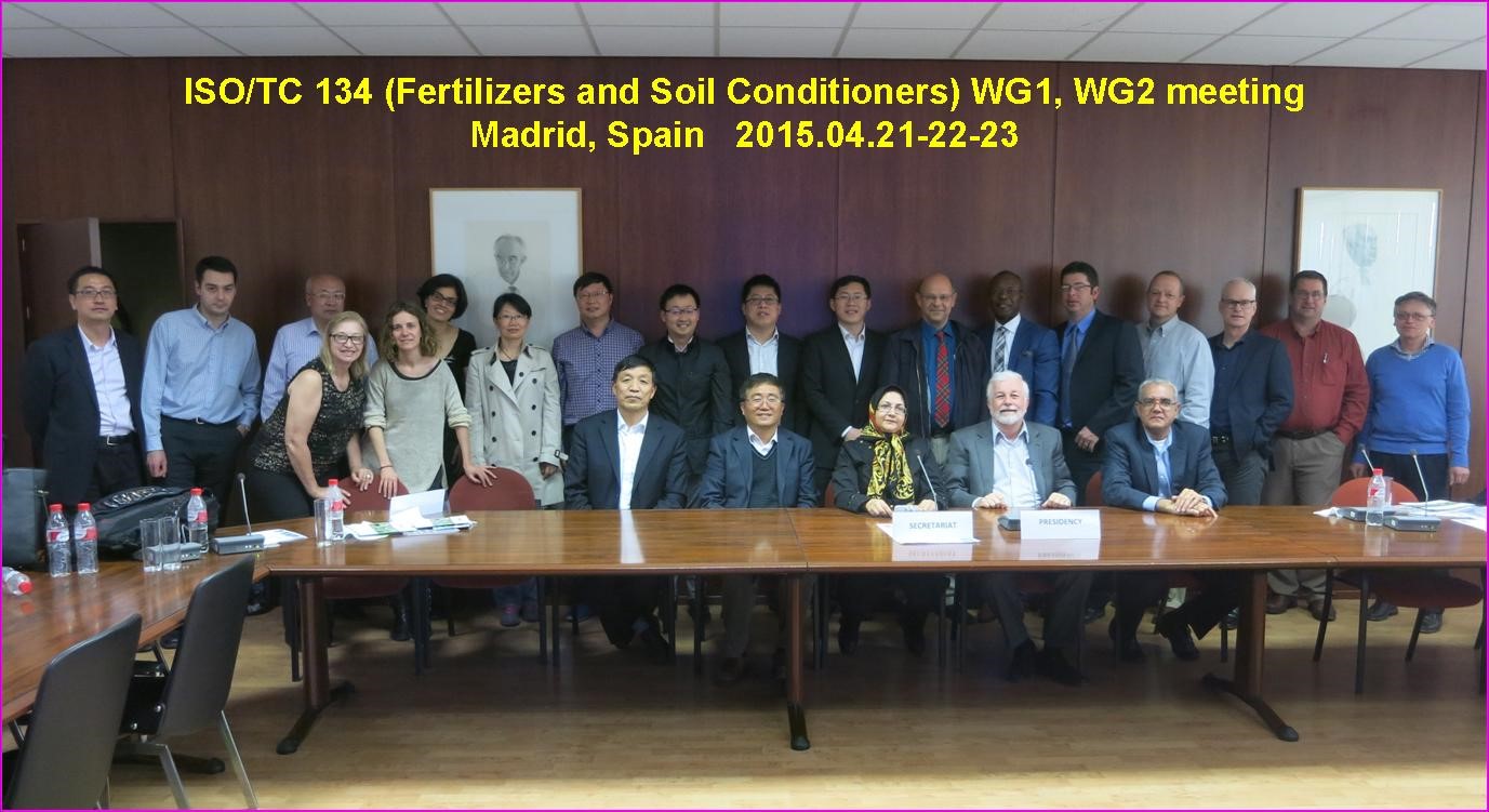 应西班牙国家标准化委员会和ISO/TC 134 国际标准化委员会肥料和土壤调理剂标准化技术委员会邀请,国家工程实验室常务副主任张民教授作为国际标准化委员会肥料和土壤调理剂标准化技术委员会委员和工作组(ISO/TC-134-WG1,WG2)专家,参加了2015年4月21日至4月25日在西班牙首都马德里召开的国际标准化委员会肥料与土壤调理剂技术委员会(ISO/TC 134,Fertilizersand Soil Conditioners)第一工作组(WG1:Inorganic or mineral fertilizers)和第二工作组(WG2:Organic fertilizers and soil improvers)专家会议。