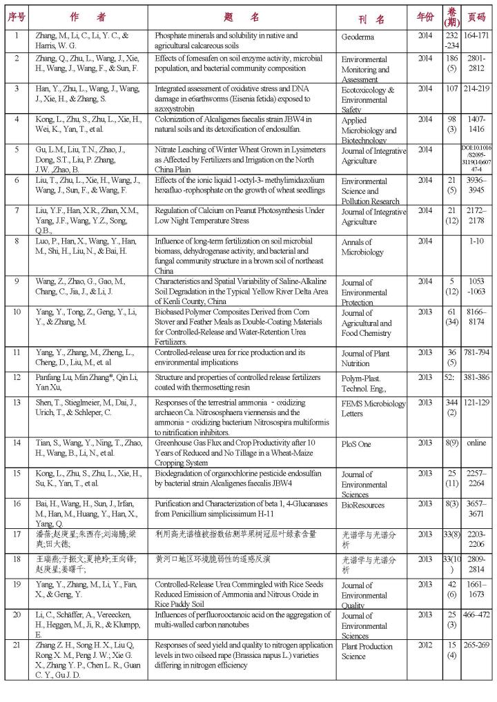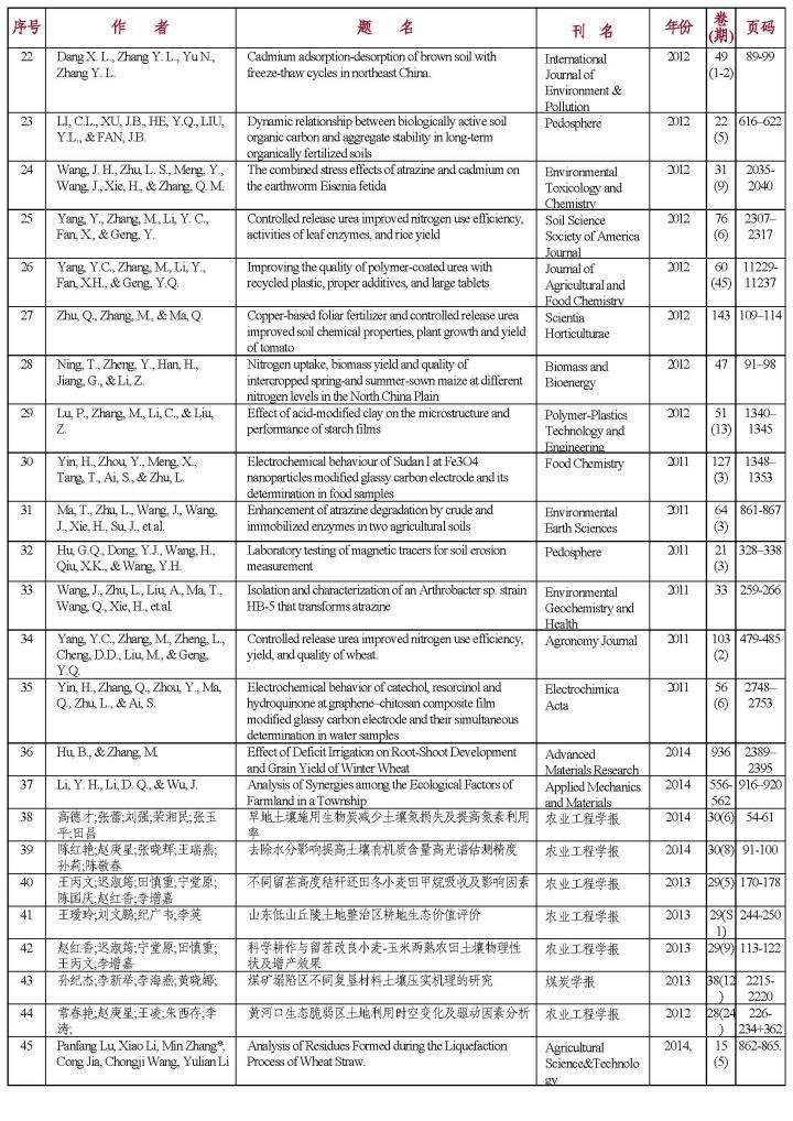 实验室建设三年期间(2011.08-2014.12)共发表论文216篇,其中SCI收录35篇(1-35),EI收录9篇(36-44),核心期刊收录172篇。